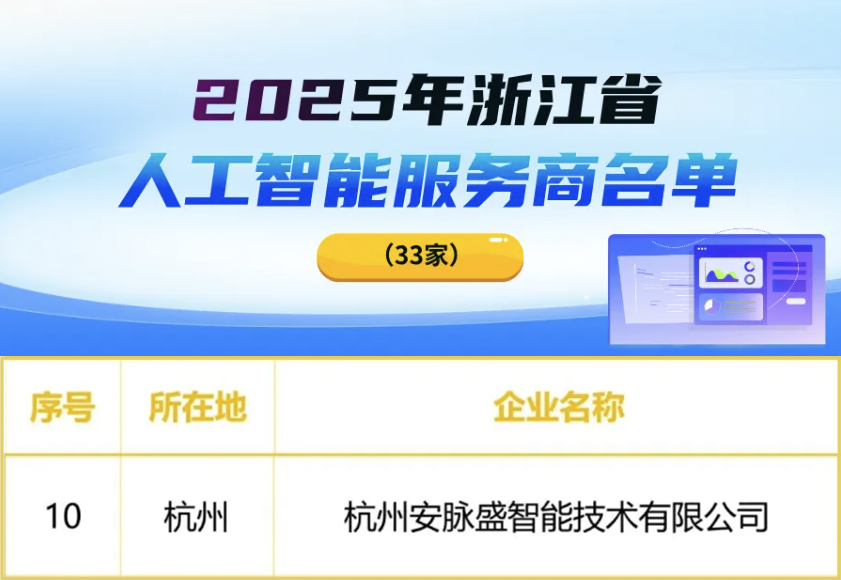 重磅 | 安脉盛荣登2025年浙江省人工智能服务商榜单